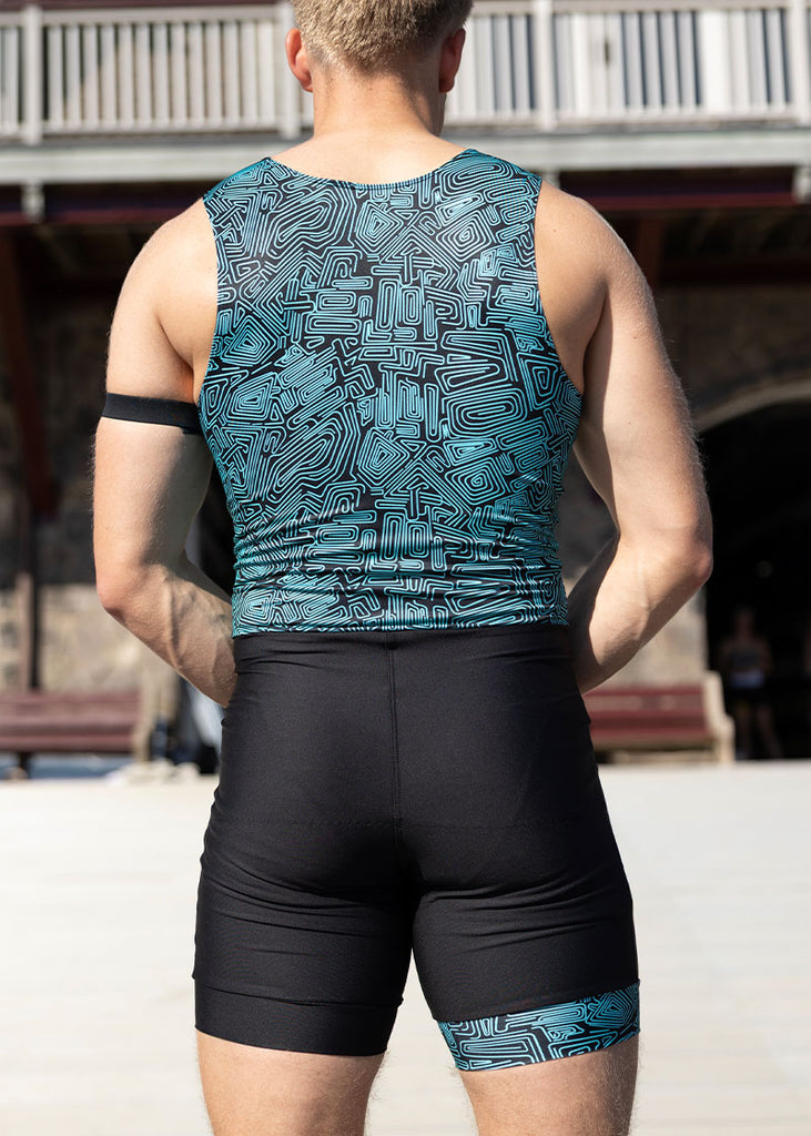 - The men's unisuit has a tank-style top, and the armholes are cut with plenty of room for the lats and the pecks you work so hard on during the winter.