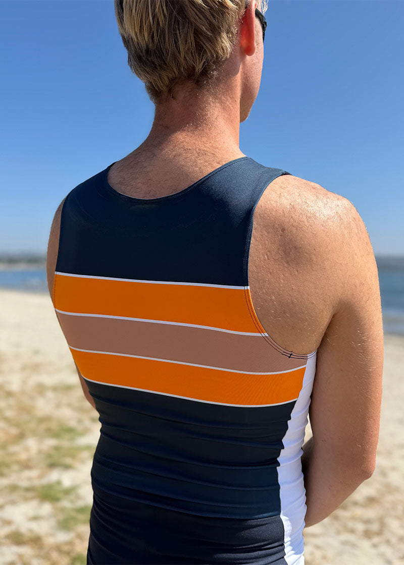 - The men's unisuit has a tank-style top, and the armholes are cut with plenty of room for the lats and the pecks you work so hard on during the winter.